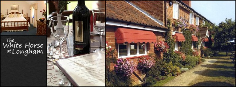 Welcome to the White Horse at Longham near Dereham, a popular & friendly village free-house pub in the heart of the picturesque Norfolk countryside and within easy reach of Norwich, Kings Lynn, the beautiful North Norfolk coast and the market towns of Dereham, Fakenham and Swaffham. The White Horse B&B at Longham offer an ever-changing selection of well-kept cask conditioned real ales, a wide selection of other beers, spirits and soft drinks, an extensive wine list and fine food in a relaxed and cosy atmosphere. We also have a small number of exceptionally well appointed bedrooms offering an ideal base from which to explore the delights of rural Norfolk, or stay while travelling on business because its what you need.